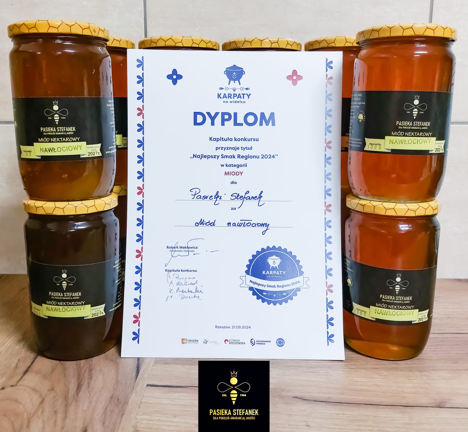 Pasieka Stefanek zdobyła prestiżowe wyróżnienie „Najlepszy Smak Regionu 2024” w kategorii miodów za swój miód nawłociowy. To wyróżnienie, przyznane podczas konkursu „Karpaty na Widelcu” w Rzeszowie, potwierdza wysoką jakość produktów oferowanych przez tę pasiekę. Miód nawłociowy od Pasieki Stefanek to doskonały wybór dla wszystkich, którzy cenią sobie naturalne produkty o wyjątkowych walorach smakowych.